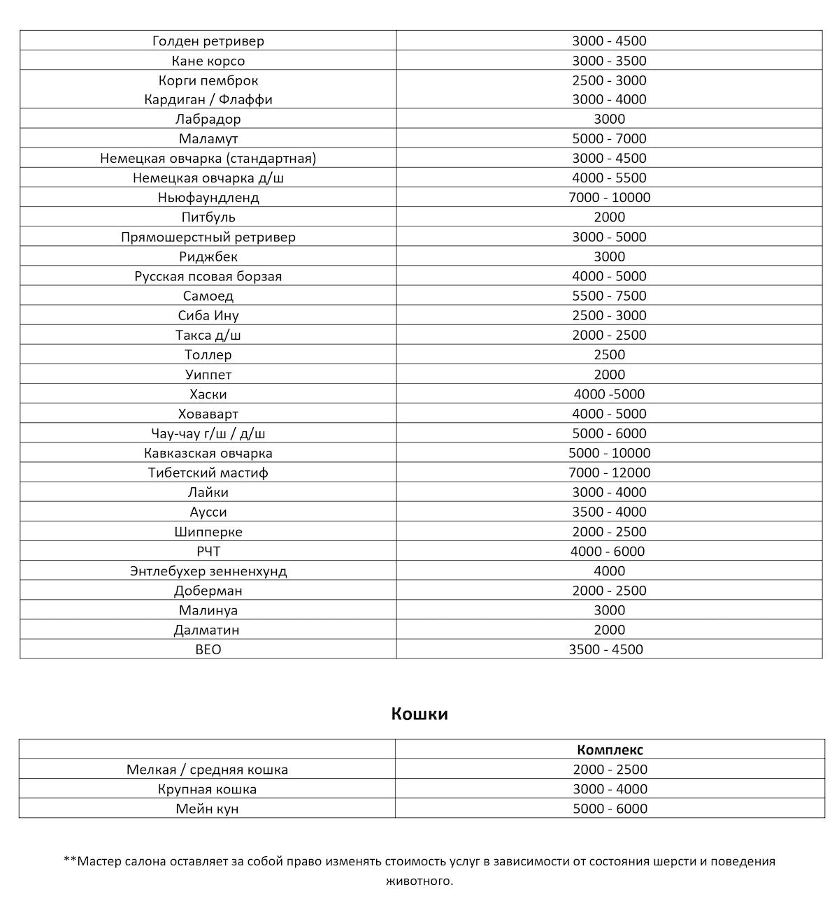 После занятия сушка включена в стоимость, а так же возможен груминг прямо на месте.