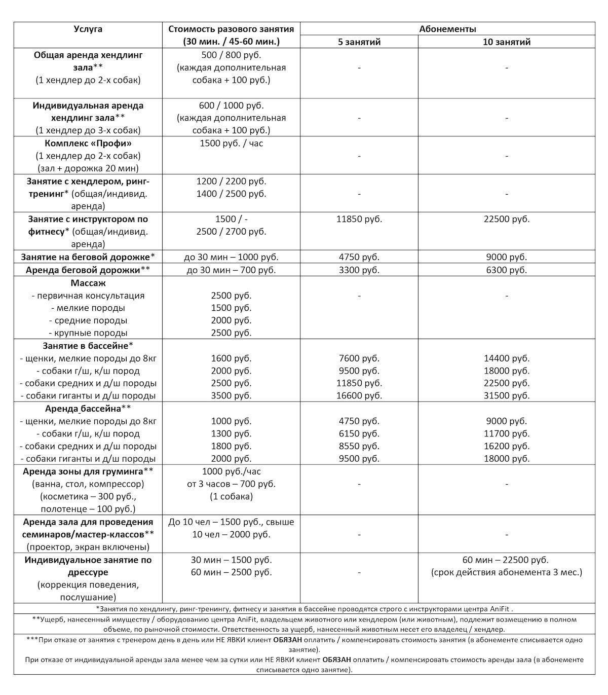 1. На занятия в «Многофункциональном центре для животных «AniFit» (далее по тексту - Центр) допускаются собаки любой породы возрастом старше 3 месяцев. Собаки в возрасте до 3 месяцев в Центр могут быть допущены под личную ответственность Владельца.